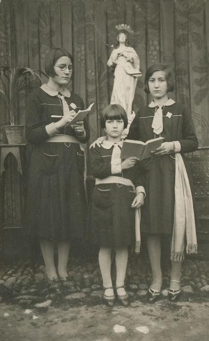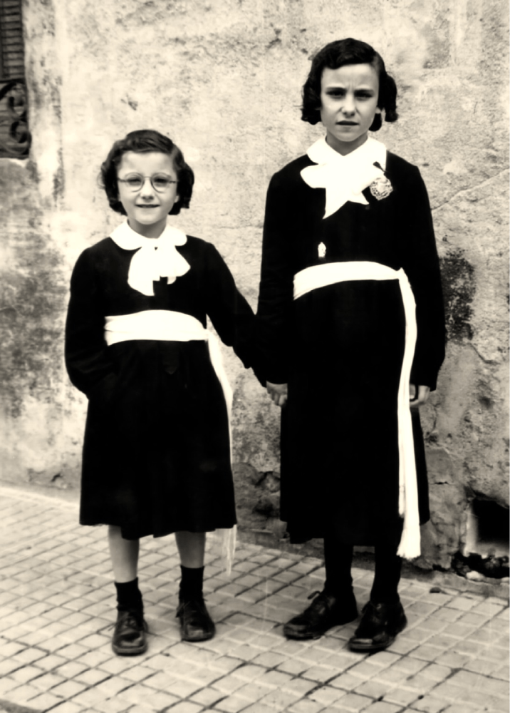 El abrigo era una capa y boina francesa en las pequeñas. Las mayores llevaban guantes blancos y velo en la fiesta de la Niña María.