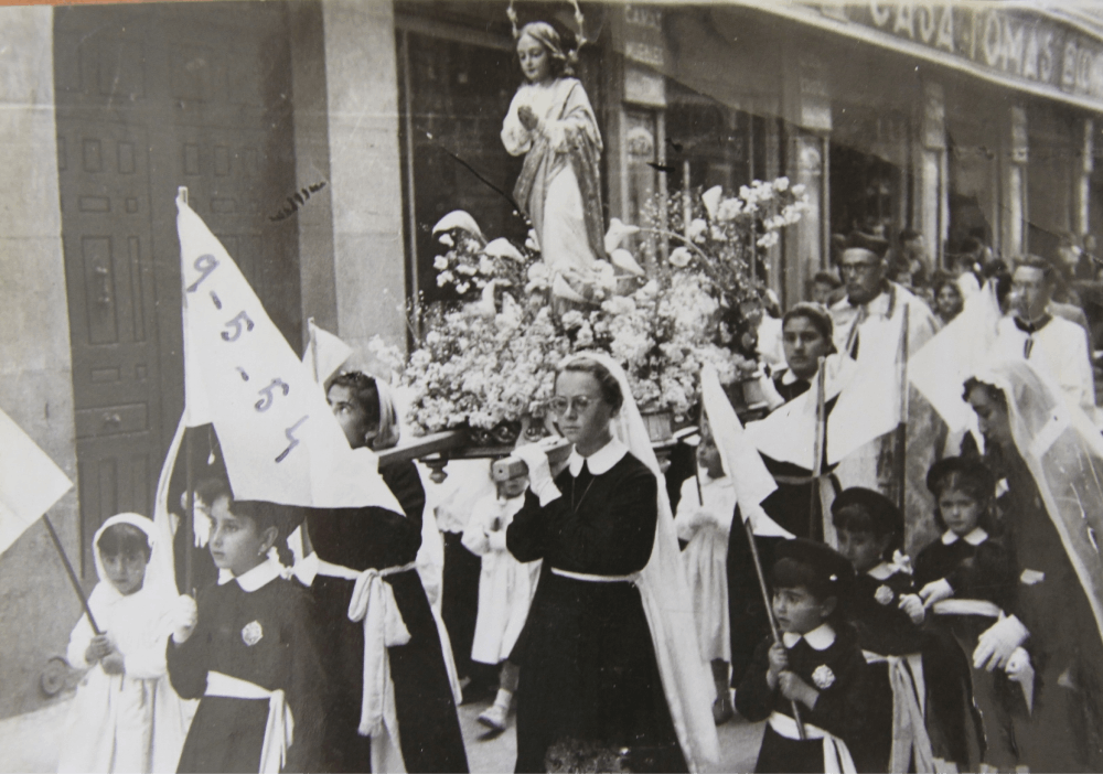 Procesión con la Niña María por las calles de Talavera el 9 de mayo de 1954.