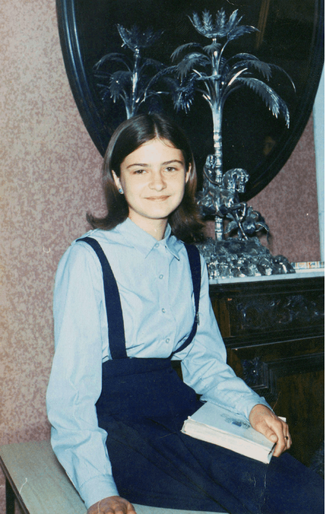 Carmen Martínez Gimeno posa en lo que hoy es la biblioteca del colegio.