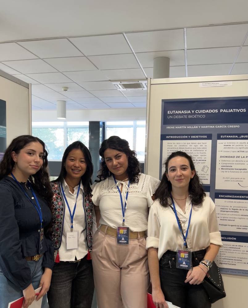 Ayoun Gómez Sánchez y Lucía Rodríguez Hormigos de 2.º de Bachillerato, han sido finalistas en el concurso organizado por la sección española de la SOCIETY CATHOLIC SCIENTISTS. Su trabajo estaba dedicado a la inteligencia artificial y fue presentado el pasado jueves en el IV Congreso de la Sociedad de Científicos Católicos de España. ¡Enhorabuena a las dos!