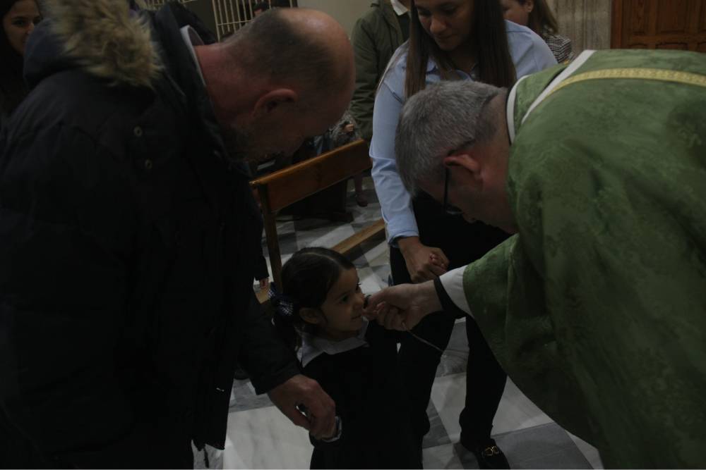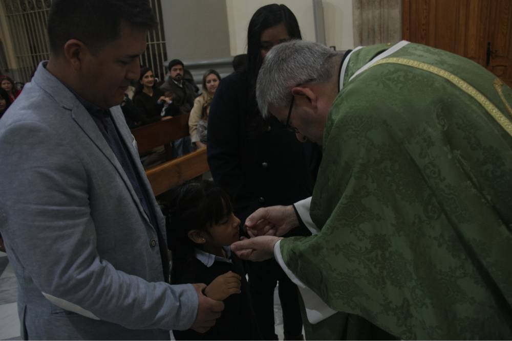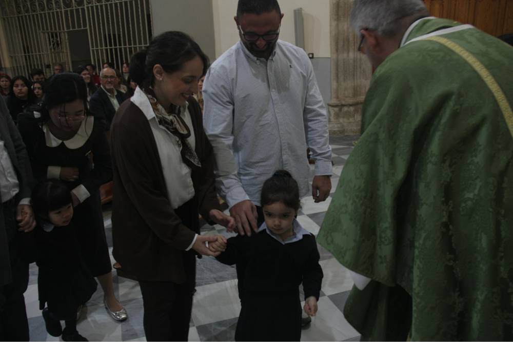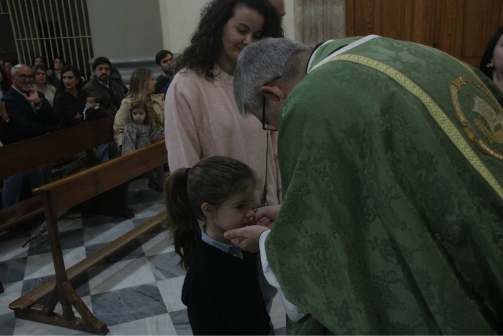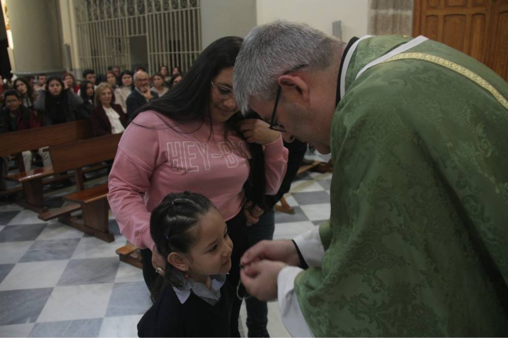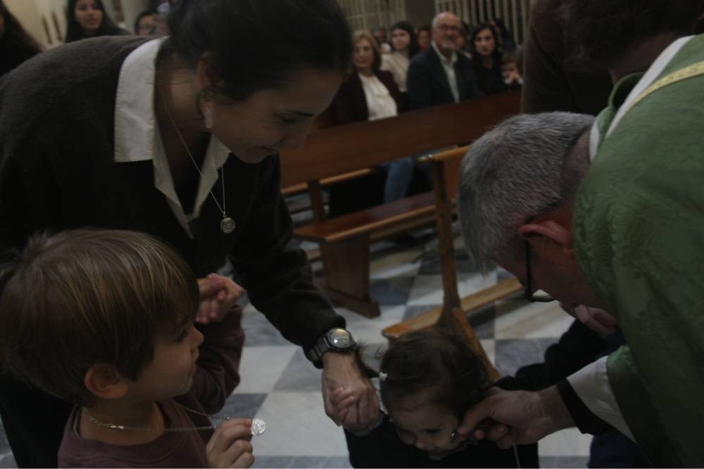 El domingo 16 de noviembre tuvimos en el colegio la tradicional imposición de medallas y escapularios de la Niña María a las nuevas alumnas de Educación Infantil y a los hijos de antiguas alumnas. La misa estuvo presidida por nuestro capellán, don Jorge López Teulón, y al final de esta las familias se acercaron al altar para recibir su medalla bendecida.