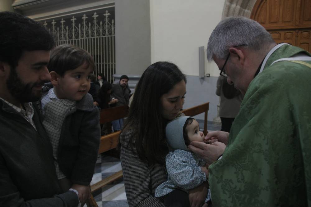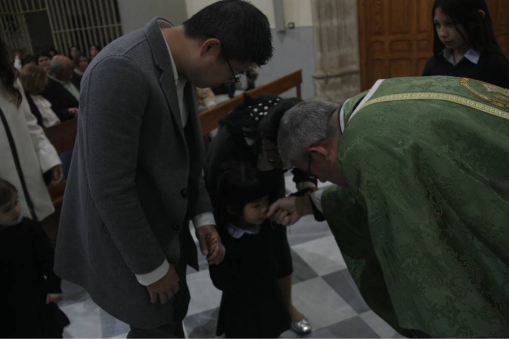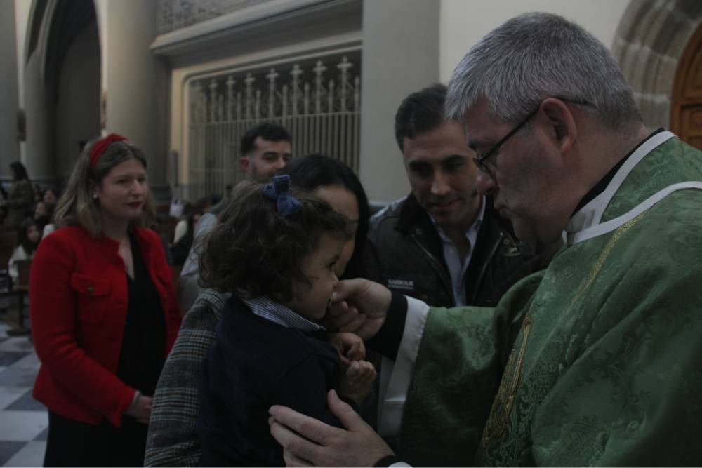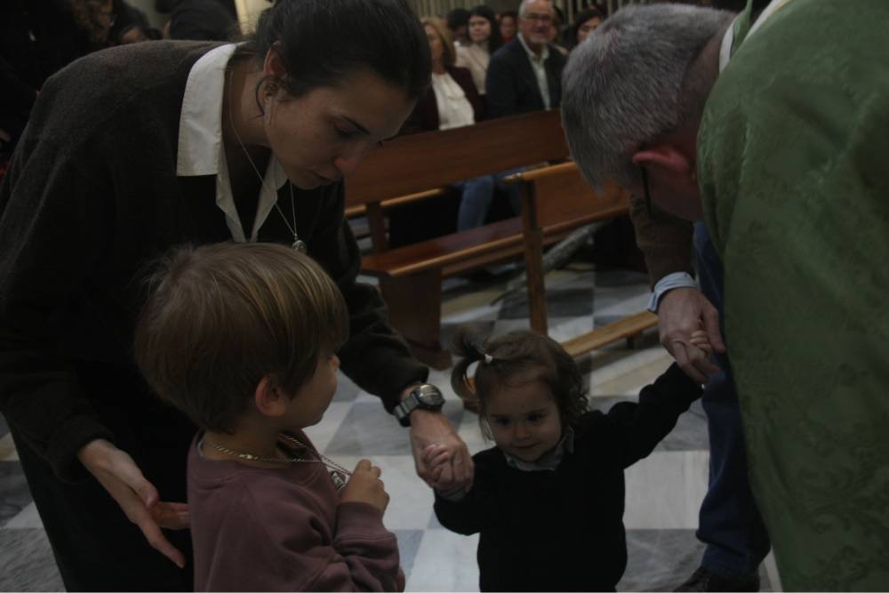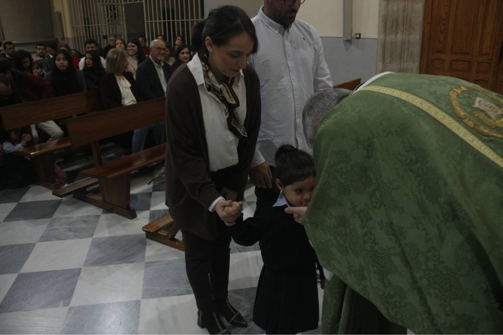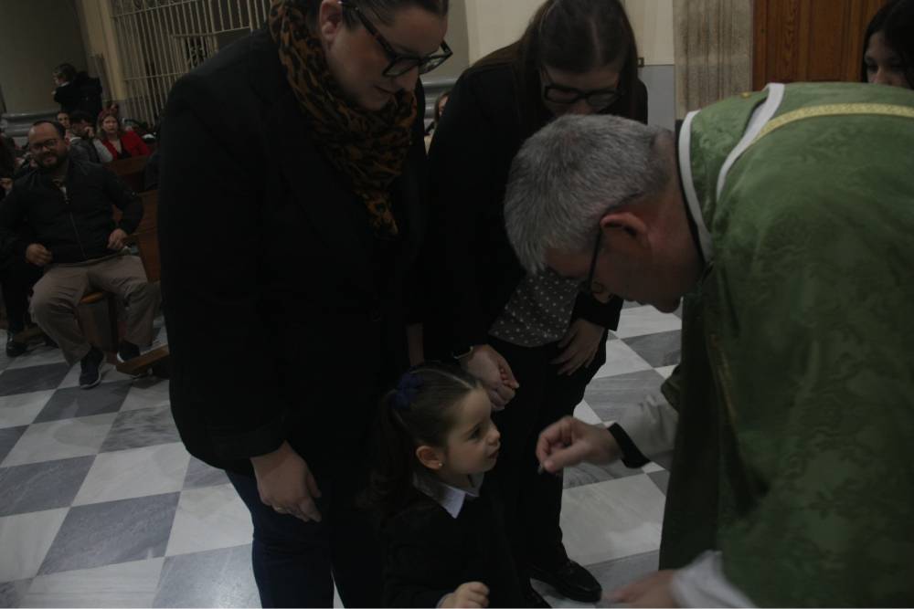 El domingo 16 de noviembre tuvimos en el colegio la tradicional imposición de medallas y escapularios de la Niña María a las nuevas alumnas de Educación Infantil y a los hijos de antiguas alumnas. La misa estuvo presidida por nuestro capellán, don Jorge López Teulón, y al final de esta las familias se acercaron al altar para recibir su medalla bendecida.