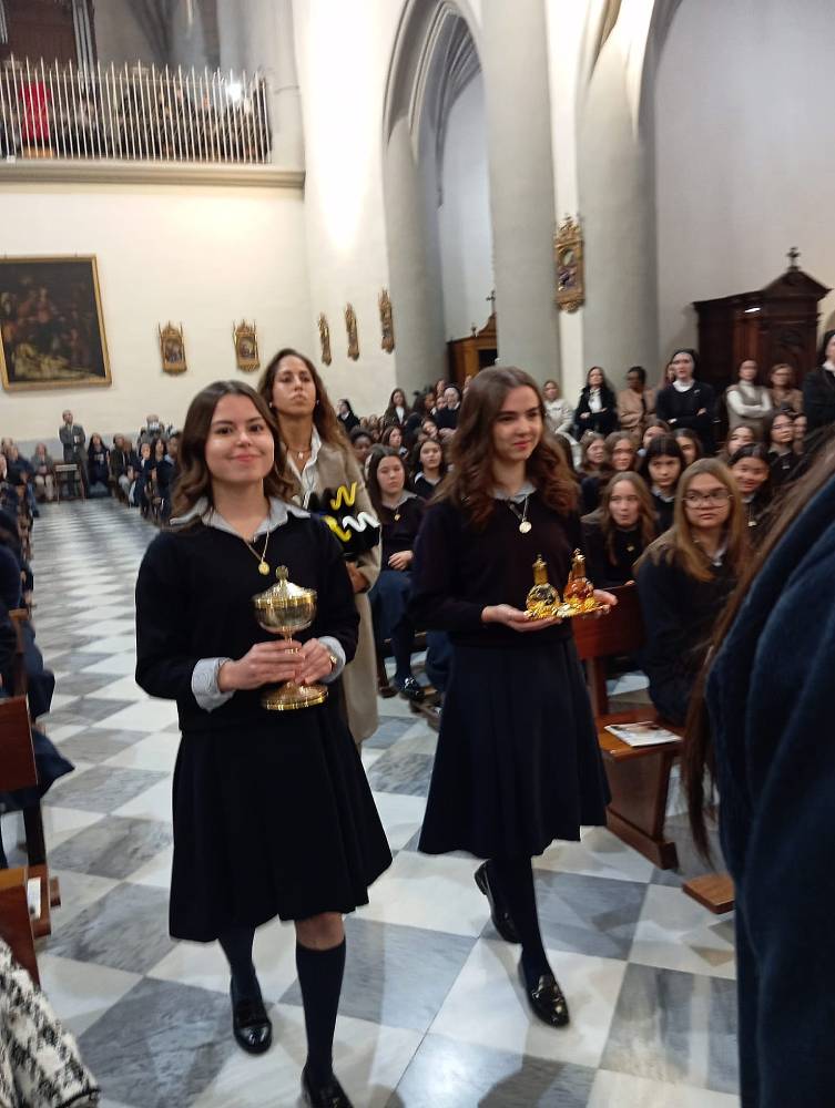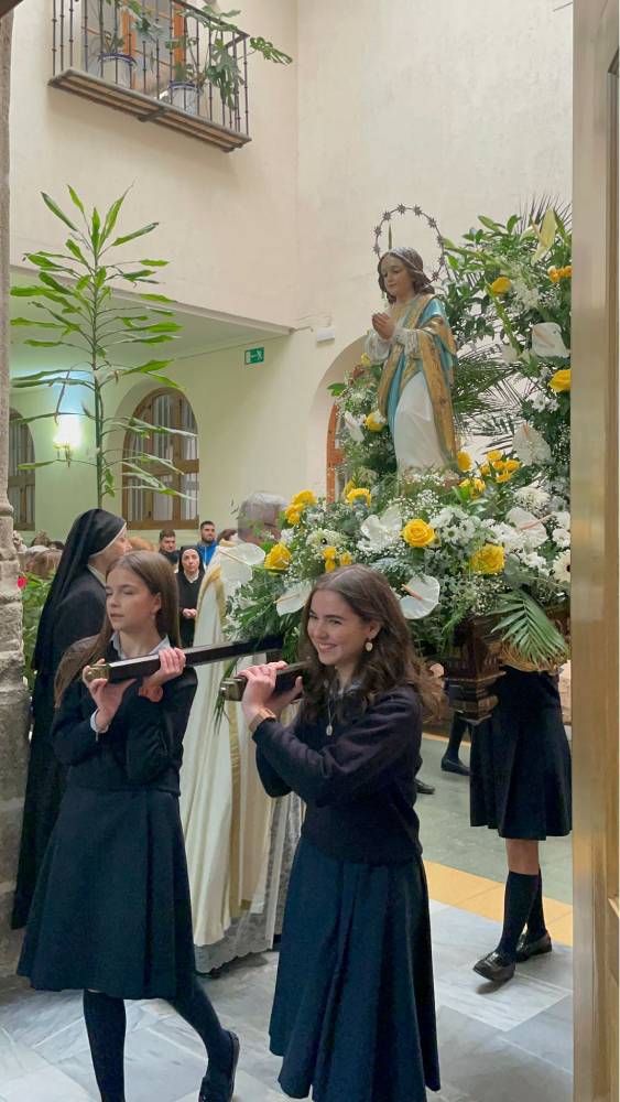 ¡21 de noviembre! Fiesta de la Niña María, la gran fiesta del colegio. Con motivo de los 125 años de esta fiesta en nuestro colegio, también en la procesión estuvieron las reliquias de los beatos Saturnino Ortega y Liberio Nombela. Como cada año, comenzó con la procesión de la imagen de la Virgen Niña, portada por las alumnas de 2.º de Bachillerato, alrededor del colegio. A continuación, la iglesia se llenó de alumnas, antiguas alumnas y familiares que participaron en la santa misa celebrada por gran número de sacerdotes.