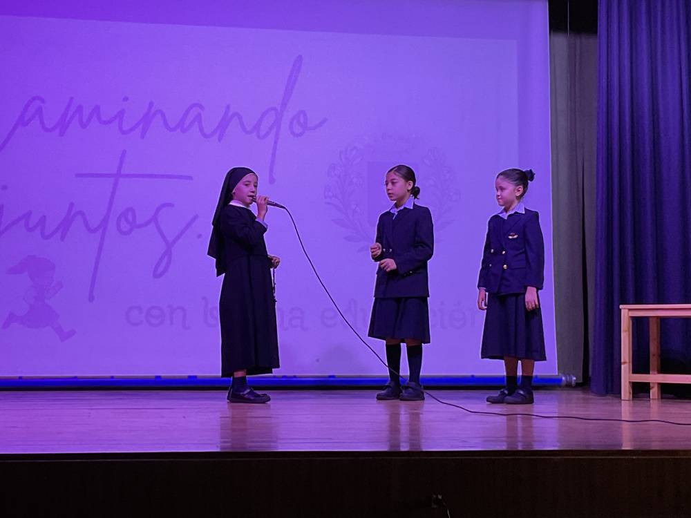 En los primeros días del curso tenemos en el colegio la Jornada de la Buena Educación en todos los niveles. En Infantil recordaron las normas de educación. En Primaria, las alumnas de 3.º de Primaria prepararon un programa de televisión en el que ellas eran las protagonistas y recordaban a sus compañeras las palabras mágicas: gracias, perdón y por favor. Las estudiantes de ESO participaron en un divertido concurso en el que repasaron las claves esenciales de la etiqueta y protocolo.