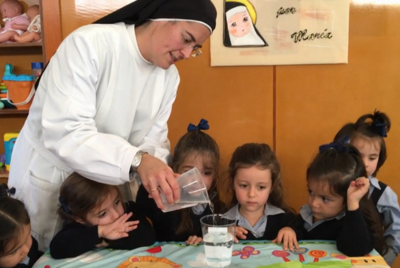 Las alumnas de Educación Infantil, en la Jornada de las Ciencias, han realizado para sus compañeras algunos experimentos científicos. Las mismas niñas de 3,4 y 5 años experimentaron con materiales muy sencillos los efectos de la presión, la refracción de la luz, la electricidad estática y otros aspectos. Resultó una tarde muy interesante.