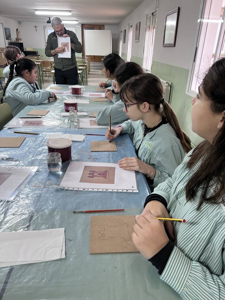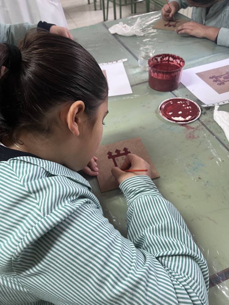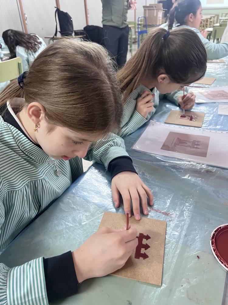 Las alumnas de 6.º de Primaria participaron en un taller del equipo Pequeños Arqueólogos sobre los castillos medievales. Con la colaboración de Rubén, miembro de este equipo, las alumnas conocieron qué es un castillo medieval, sus funciones, partes y estructura. En la parte práctica de la actividad cada una decoró su propia tabla mudéjar con el motivo de un castillo, uno de los motivos más característicos de la pintura mudéjar sobre tabla. Fue una actividad completísima.