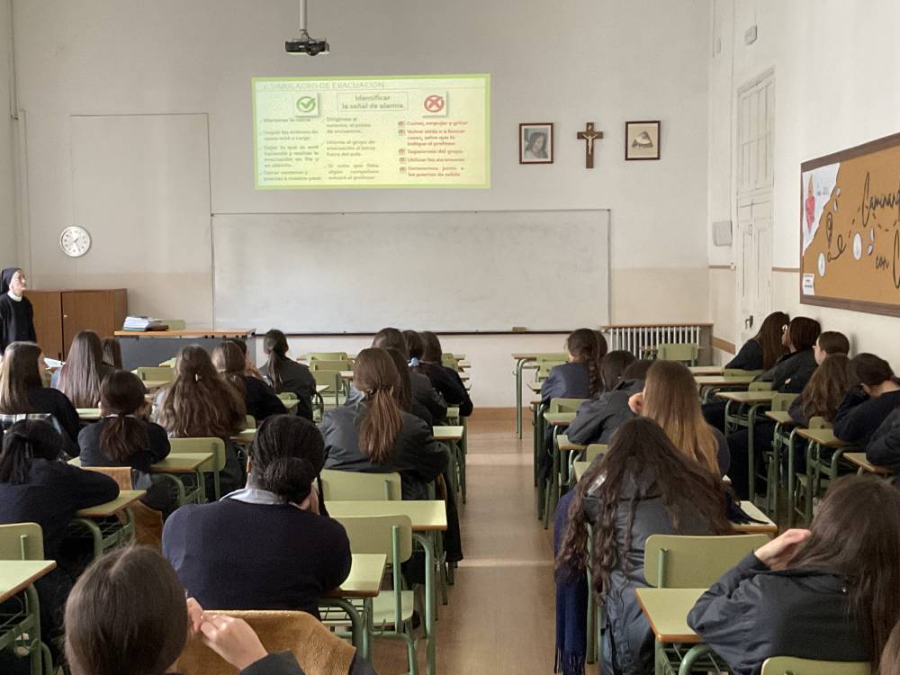 Dentro del curso del Plan de Formación ante Emergencias de Protección Civil, las alumnas de todos los niveles han tenido su primera sesión de formación. Ha consistido en conocer las emergencias más comunes y recordar los puntos esenciales para hacer una correcta evacuación del centro. Más adelante, se completará el curso con otras sesiones formativas.